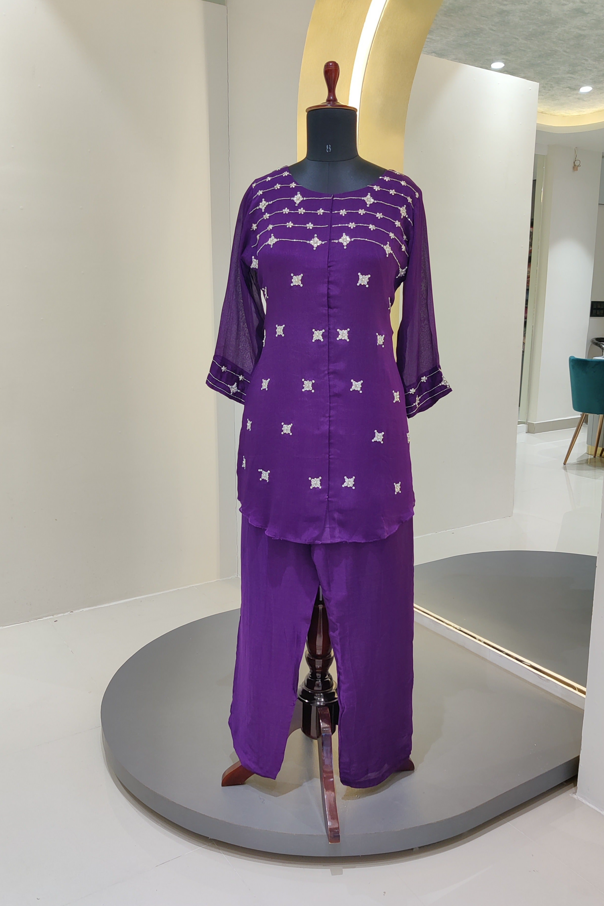 Expertly crafted with Chinnon fabric, these Pant style co-ords are perfect for any party wear. With a luxurious feel and elegant look, these co-ords will make you stand out in any crowd. Elevate your wardrobe with this stylish and comfortable option.