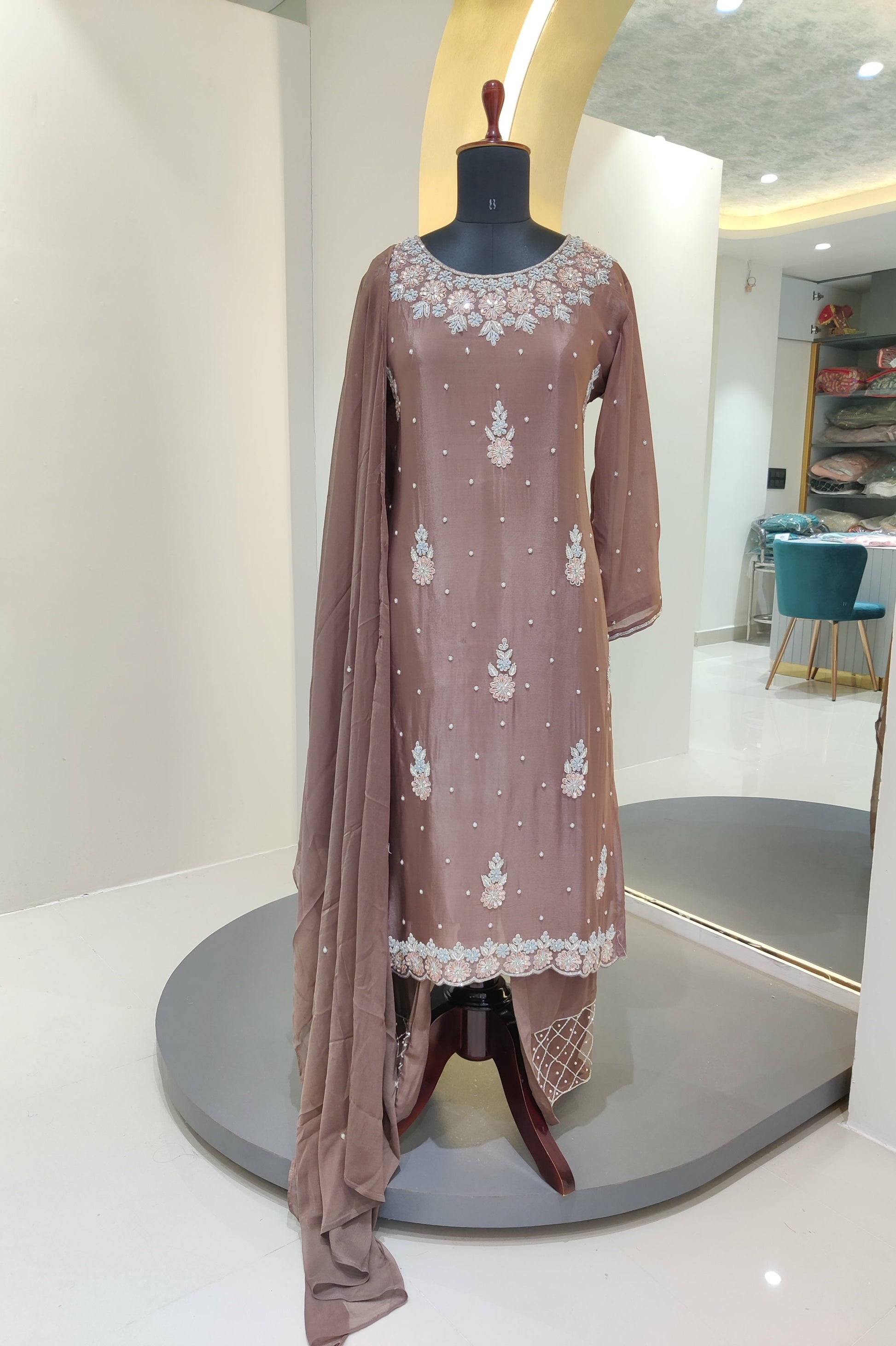 Introducing the Chinnon suit, crafted with intricate details for a refined and elegant look. Made from high-quality chinnon fabric, this suit is both durable and comfortable. Perfect for any formal occasion, elevate your style with this expertly designed suit.