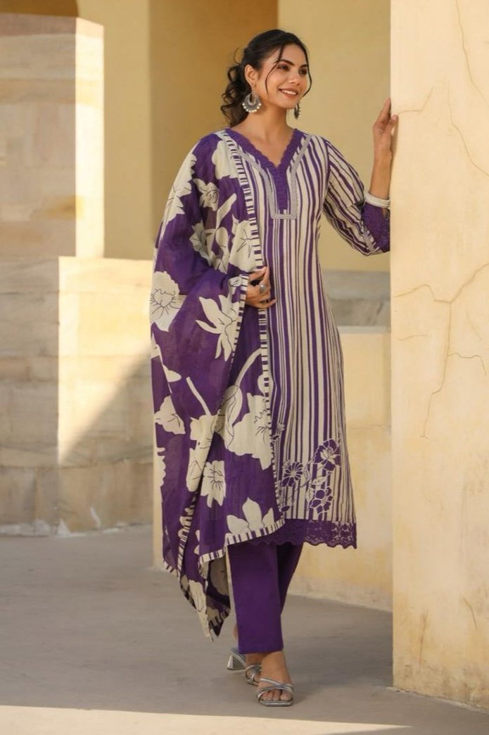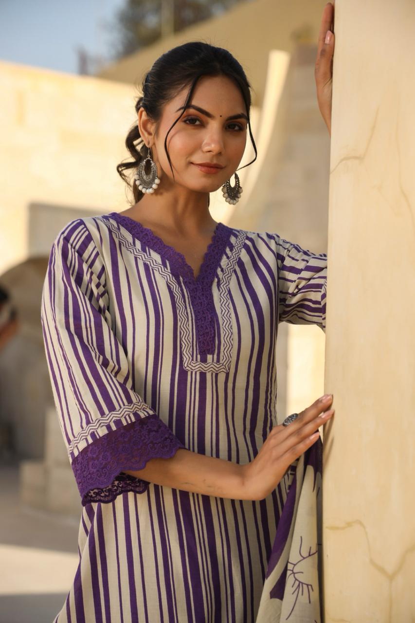 Expertly crafted with high-quality cotton fabric, this kurta set offers both style and comfort. The printed kurta is enhanced with delicate lace details, while the cotton pant and dupatta add versatility to your wardrobe. Elevate your look effortlessly with this must-have piece.