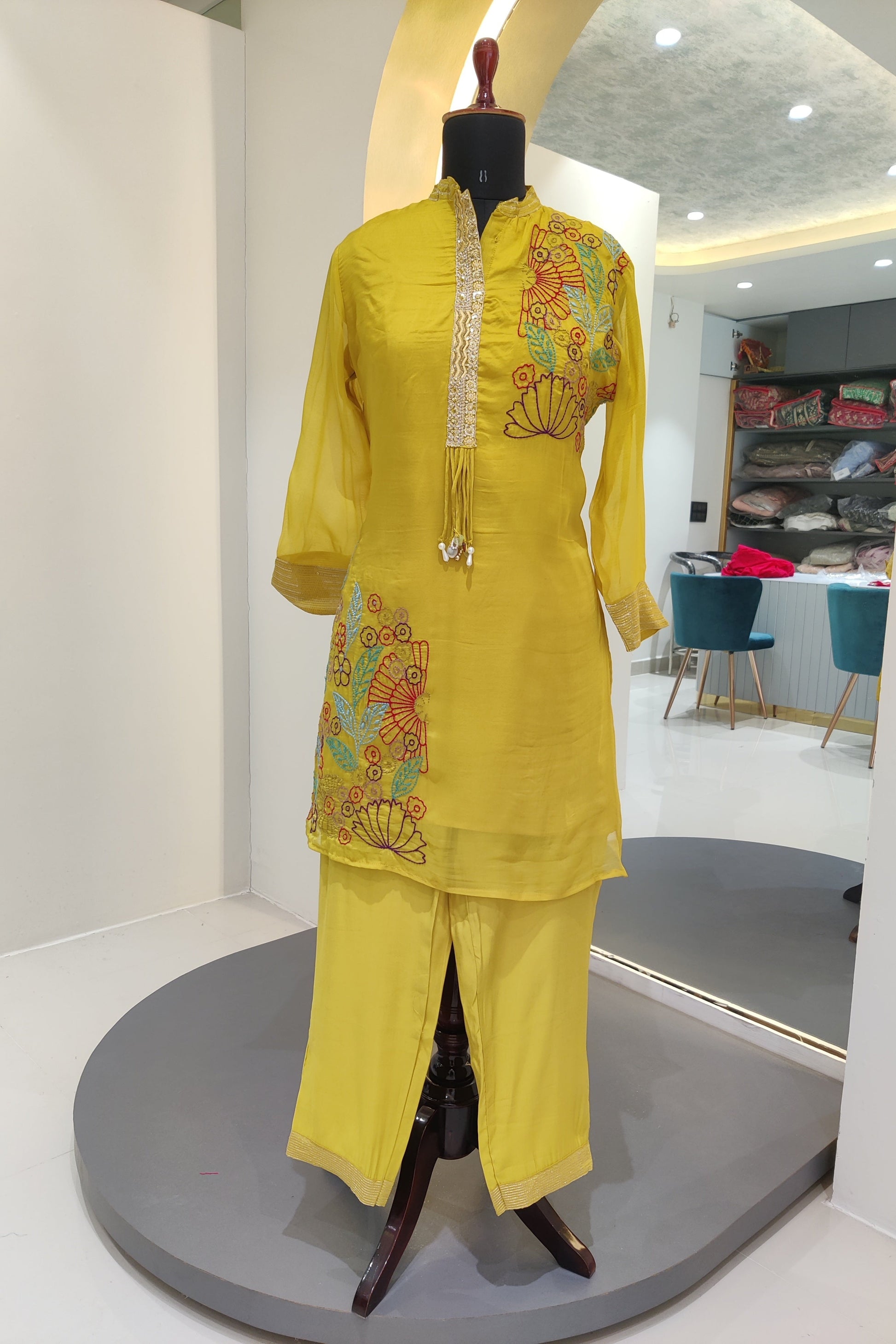 Expertly crafted using multi thread work and premium organza fabric, our Organza Cord Set offers a sophisticated touch to any ensemble. The delicate fabric provides a luxurious feel while the intricate thread work adds an elegant flair. Elevate your style with this must-have accessory.