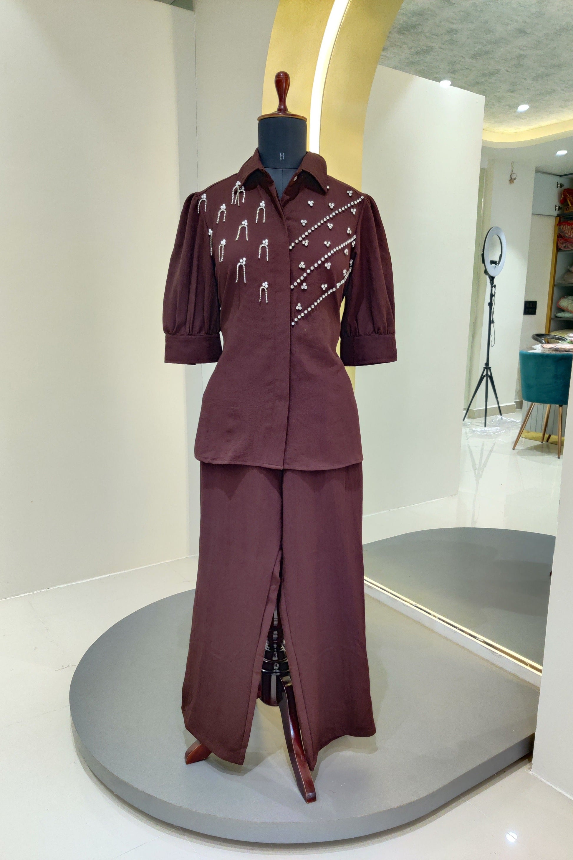 This stone studded cords set features a luxurious and durable lycra fabric, creating a comfortable and stylish accessory. The intricate stone detailing adds a touch of elegance, making it the perfect addition to any outfit. Elevate your style with this high-quality, versatile set.